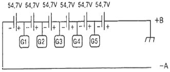 모듈의 + COMMON은 접지와 연결되어 있고, 지락 발생 시 직렬모듈 전체 전압 변화로 모듈의 지락상태 및 위치를 파악할 수 있는 그림이다. 접속반 채널이 정상상태인 경우 단자 A와 B 사이의 전압은 몇 V인가?