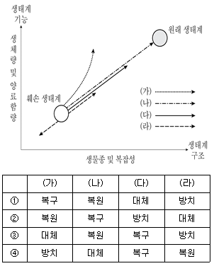 산림 관리와 관련된 생태계 변화의 모식도이다. (가)~(라)에 들어갈 용어를 바르게 연결한 것은?