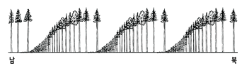 그림과 같이 3개의 벌채단위에서 북쪽에서 남쪽으로 벌채가 진행되는 갱신방법은? (단, 그림은 높이를 확대한 것이며, 한 벌채단위의 각 측면도에는 계층이 없고 유선적임)