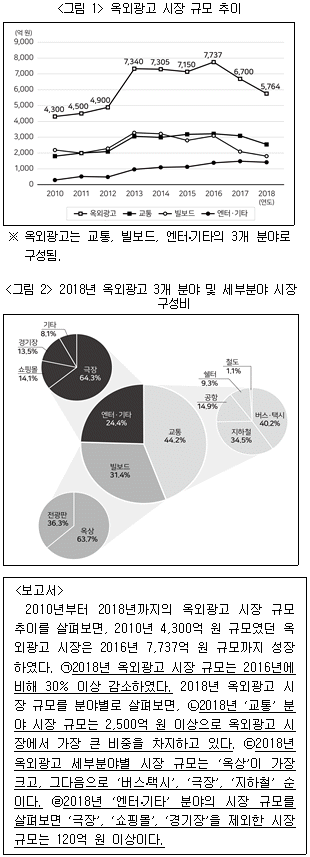 다음 <그림>은 옥외광고 시장 규모 및 구성비에 대한 자료이다. 이를 바탕으로 작성한 <보고서>의 내용 중 옳은 것만을 모두 고르면?