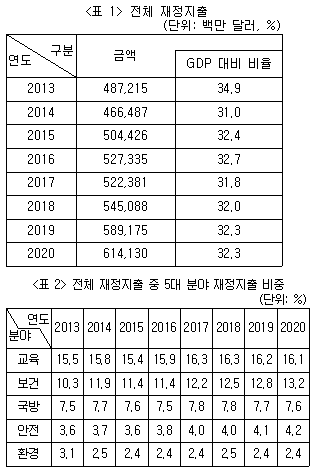 다음 <표>는 2013~2020년 '갑'국 재정지출에 대한 자료이다. 이에 대한 설명으로 옳지 않은 것은?