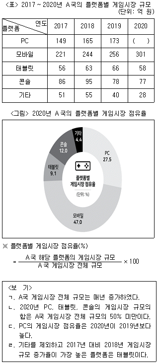 다음 <표>와 <그림>은 A국 게임시장에 관한 자료이다. 이에 대한 <보기>의 설명 중 옳은 것만을 고르면?