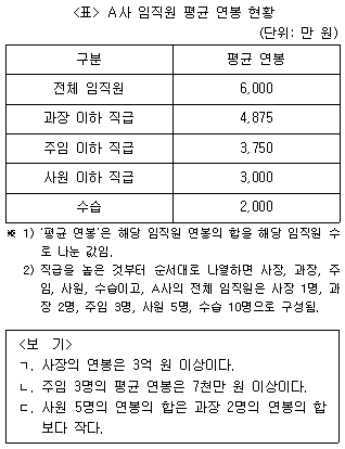 다음 <표>는 A사 임직원 평균 연봉 현황에 관한 자료이다. 이에 대한 <보기>의 설명 중 옳은 것만을 모두 고르면?