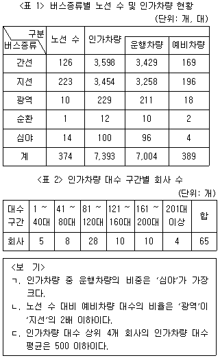 다음 <표>는 2022년 '갑'시의 시내버스 현황에 관한 자료이다. 이에 대한 <보기>의 설명 중 옳은 것만을 모두 고르면?