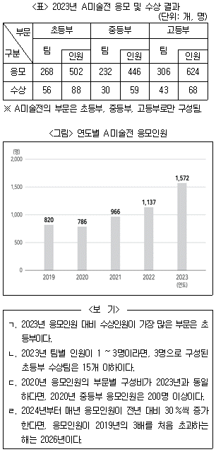 다음 <표>와 <그림>은 A미술전 응모 및 수상 결과에 관한 자료이다. 이에 대한 <보기>의 설명 중 옳은 것만을 모두 고르면?