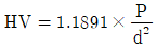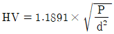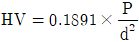 비커스 경도 계산식으로 옳은 것은? (단, P는 작용하중(N), d는 압입자국 대각선의 평균길이(mm)이다.)