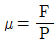 마모시험에서 마찰계수를 구하는 식은? (단, F:마찰력, P:적용하중, μ:마찰계수이다.)
