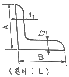 그림과 같은 부등변 부등두께 ㄱ 형강의 표시방법으로 옳은 것은? (단, 형강의 길이는 K이다.)