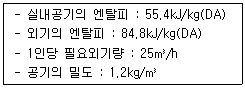 다음과 같은 조건에서 재실인원이 20명인 실내의 냉방에 요구되는 외기부하량은?