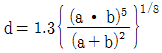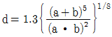 원형덕트와 4각덕트와의 관계식으로 옳은 것은? (단, a는 원형덕트의 직경, b와 는 각각 4각 덕트의 장변, 단변의 길이이다.)