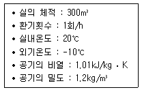 다음과 같은 조건에 있는 실의 난방부하 산정 시틈새바람에 의한 외기현열부하는?