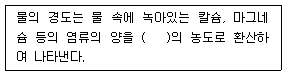 다음의 물의 경도에 관한 설명 중 ( )안에 알맞은 용도는?