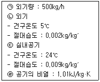 다음과 같은 조건에서 난방 시 외기에 의한 현열부하는?