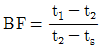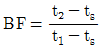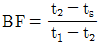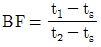 냉각코일의 입구공기온도 t1, 출구공기온도 t2, 냉각코일표면온도가 ts 일 때 바이패스팩터(BF)를 바르게 표기한 것은?