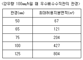 최대강우량 60mm/h의 지역에 있는 수평투영면적 1200m2의 건물에 4개의 우수배수수직관을 설치할 경우 알맞은 관경은?