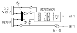 다음은 공기조화기와 주위 덕트 구성을 나타낸 것이다. Ⓐ와 같이 설치되는 기기는?