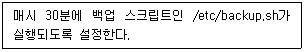 다음 조건으로 cron을 이용해서 일정을 등록할 때 알맞은 것은?(문제 오류로 가답안 발표시 2번으로 발표되었으나, 확정답안 발표시 모두 정답처리 되었습니다. 여기서는 가답안인 2번을 누르면 정답 처리 됩니다.)