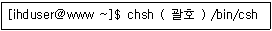 다음은 사용자가 로그인 셸을 변경하는 과정이다. ( 괄호 ) 안에 들어갈 옵션으로 알맞은 것은?