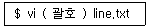 vi 편집기로 line.txt 파일의 내용을 불러오면서 커서의 위치를 마지막 줄에 위치시키려고 한다. 다음 ( 괄호 ) 안에 들어갈 옵션으로 알맞은 것은?