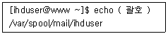 다음은 ihduser가 본인에게 도착하는 메일 관련 파일의 경로를 확인하는 과정이다. ( 괄호 ) 안에 들어갈 환경 변수명으로 알맞은 것은?