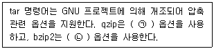 다음은 tar에서 지원하는 압축 관련 옵션에 대한 설명이다. ( 괄호 ) 안에 들어갈 내용으로 알맞은 것은?