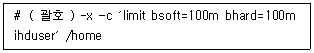 다음은 ihduser 사용자에게 대한 디스크 쿼터를 설정하는 과정이다. ( 괄호 ) 안에 들어갈 명령어로 알맞은 것은?