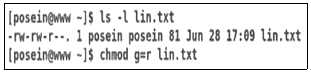 다음 명령의 결과로 설정되는 lin.txt 파일의 허가권 값으로 알맞은 것은?