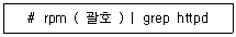다음은 httpd 라는 이름의 rpm 패키지가 설치되어 있는지를 확인하는 과정이다. ( 괄호 ) 안에 들어갈 내용으로 알맞은 것은?