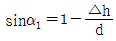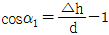 압연시 접촉각을 α1 이라 할 때 접촉각과 롤 지름(d) 및 압하량(△h)과의 관계로 옳은 것은?