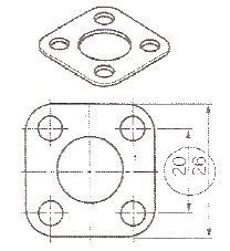 그림에서 치수 20, 26에 치수 보조 기호가 옳은 것은?