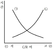 다음 그림은 C/R비와 시간과의 관계를 나타낸 그림이다. ㉠~㉣에 들어갈 내용이 맞는 것은?