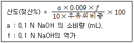 검체 10mL로 우유의 산도를 계산하는 다음 식에서 0.009의 의미는?