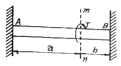 양단이 고정된 축을 그림과 같이 m-n 단면에서 비틀면 고정단에서 생기는 저항 비틀림 모멘트의 비 TB/TA는?
