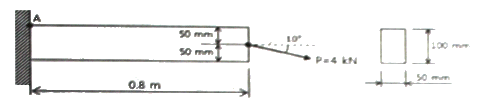 그림과 같은 직사각형 단면의 보에 P = 4kN의 하중이 10° 경사진 방향으로 작용한다. A점에서의 길이 방향의 수직응력을 구하면 몇 MPa 인가?