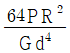 코일스프링에서 가하는 힘 P, 코일 반지름 R, 소선의 지름 d, 전단탄성계수 G라면 코일 스프링에 한번 감길때마다 소선의 비틀림각 ø를 나타내는 식은?