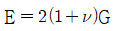 어떤 탄성재료의 탄성계수 E와 전단 탄성계수 G 사이에 성립하는 관계식으로 맞는 것은? (단, ν는 재료의 포아송(Poisson) 비이다.)