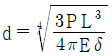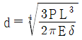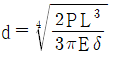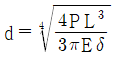 길이가 L인 연겅재 단순보(simple beam)의 중앙에 집중하중 P가 작용하고 있다. 중앙 부분의 처짐이 δ였다면 연강재의 지름 d는? (단, 연강재의 탄성계수는 E 이다.)