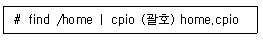 다음은 cpio 명령을 이용해서 /home 영역을 백업(Backup)하는 과정이다. ( 괄호 ) 안에 들어갈 내용으로 알맞은 것은?
