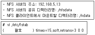 다음 조건일 때 NFS 클라이언트에서 설정하는 내용으로 알맞은 것은?