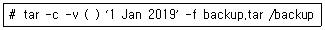 tar 명령을 이용해 2019년 1월 1일 이후로 변경된 파일을 백업하려고 한다. 다음 중 ( 괄호 ) 안에 들어갈 내용으로 알맞은 것은?
