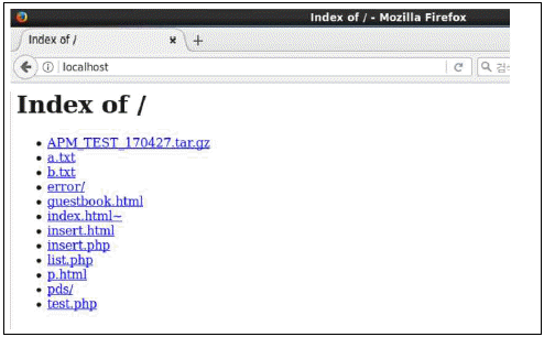 웹 브라우저를 사용해서 웹 서버에 접속했더니 그림과 같이 표시되었다. 다음 중 해당 내용과 관련된 httpd.conf의 Options 항목으로 알맞은 것은?