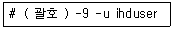 ihduser 사용자의 모든 프로세스를 강제 종료하는 경우 ( 괄호 ) 안에 들어갈 명령으로 알맞은 것은?