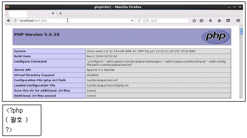 다음 그림과 같이 php 연동 여부를 확인하려고 할 때 ( 괄호 ) 안에 들어갈 내용으로 알맞은 것은?