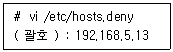 운영 중인 텔넷 서버로 IP 주소가 192.168.5.13인 호스트의 접근을 Tcp Wrapper를 이용해서 접근을 차단하려고 한다. 다음 ( 괄호 ) 안에 들어갈 내용으로 알맞은 것은?
