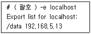 다음은 NFS 서버에 익스포트된 정보를 확인하는 과정이다. ( 괄호 ) 안에 들어갈 명령으로 알맞은 것은?