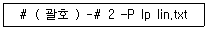 lin.txt라는 문서를 lp라는 이름을 가진 프린터로 2장 출력하는 과정이다. 다음 ( 괄호 ) 안에 들어갈 명령으로 알맞은 것은?