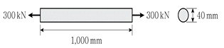 그림과 같이 원형단면을 가지는 부재에 중심축하중 300kN이 작용하여 길이가 5mm 늘어났을 때, 부재의 전단탄성계수[GPa]는? (단, π는 3으로 가정하고, 포아송비는 0.25이다)