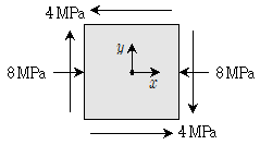 그림과 같이 평면응력을 받고 있는 평면요소에 대하여 주응력이 발생되는 주각[°]은? (단, 주각은 xz축에 대하여 반시계방향으로 회전한 각도이다)