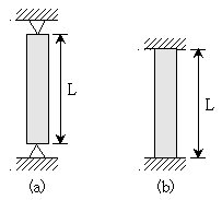 그림 (a)와 같은 양단이 힌지로 지지된 기둥의 좌굴하중이 10kN이라면, 그림 (b)와 같은 양단이 고정된 기둥의 좌굴하중[kN]은? (단, 두 기둥의 길이, 단면의 크기 및 사용 재료는 동일하다)