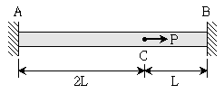그림과 같이 양단이 고정된 부재에 하중 P가 C점에 작용할 때, 부재의 변형에너지는? (단, 부재의 축강성은 EA이고, 부재의 자중은 무시한다)